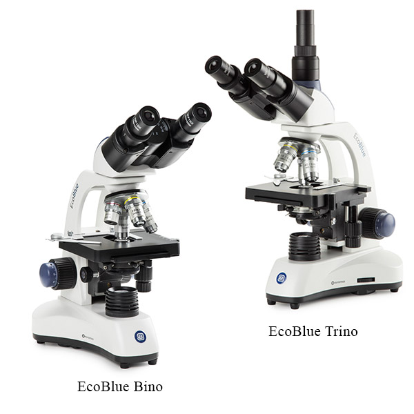 The modern microscopes of the EcoBlue series are especially developed for educational purposes with primary focus on ergonomic and excellent price/quality ratio. These microscopes are supplied with secured eyepieces, achromatic objectives and an adjustable rack stop to prevent damage to sample and objectives.