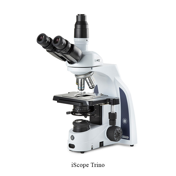 Besides the brightfield contrast method, configurations for phase contrast, cardioid mirror darkfield, basic polarization and several epi- illumination sources for fluorescence applications can be used. iScope models with multi-heads are also available for teaching purposes.